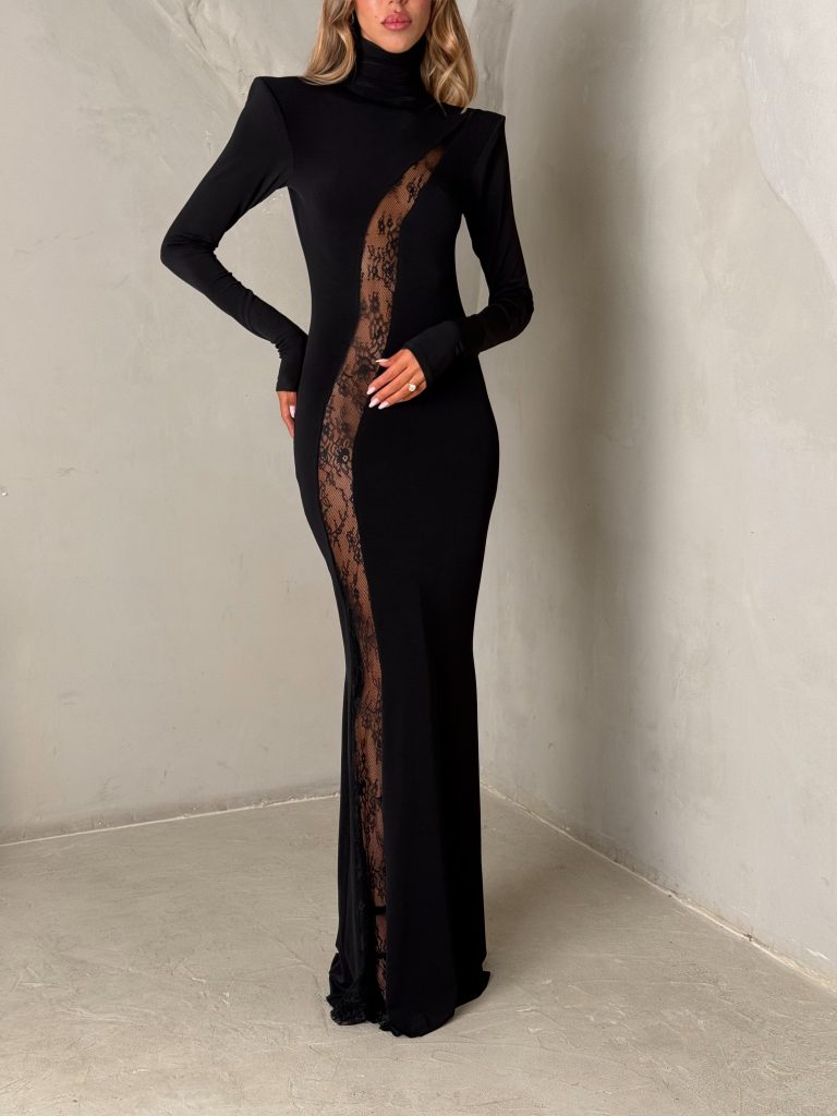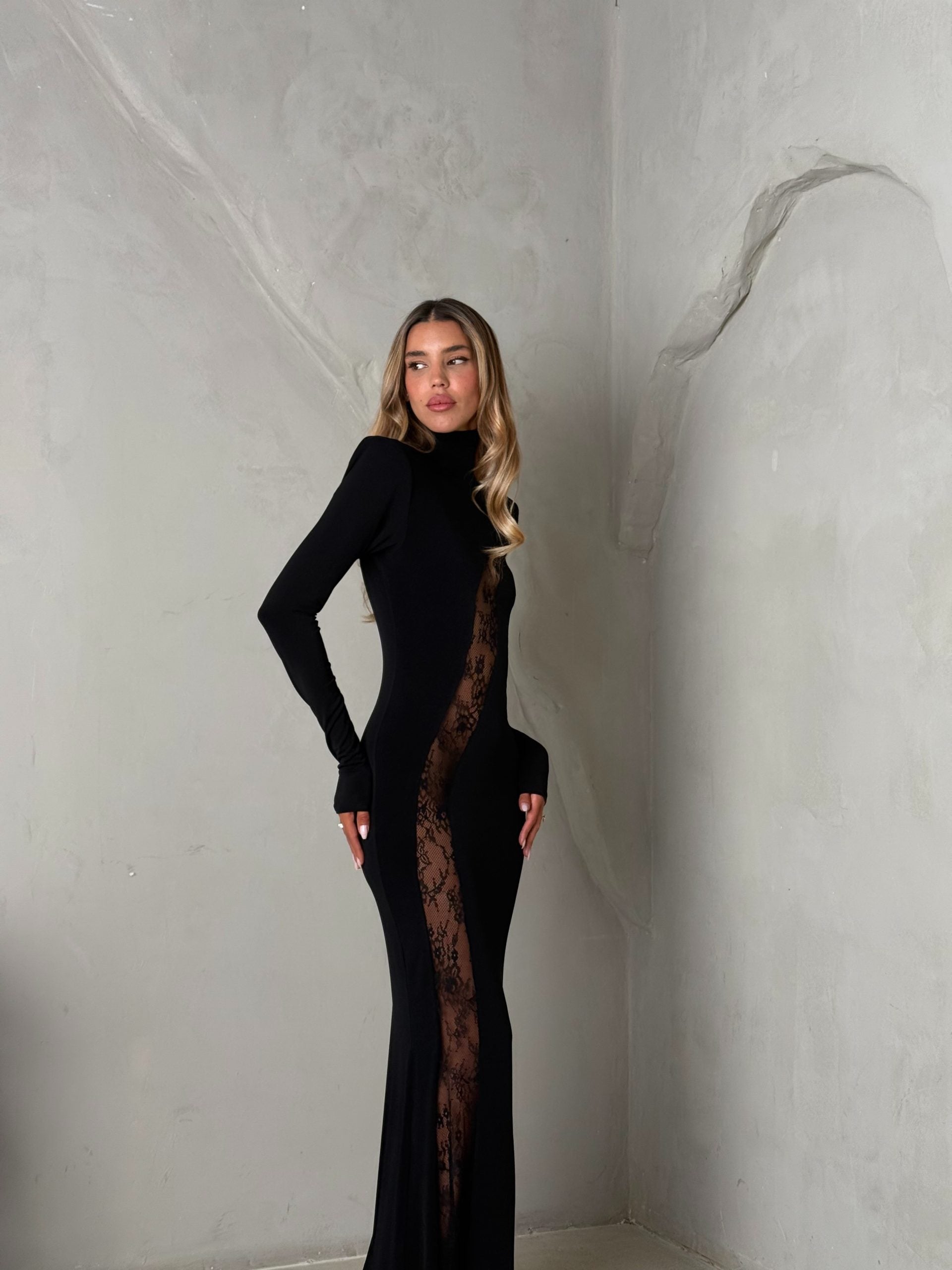 שמלת גולף שחורה עם מפתח אסימטרי לאורך