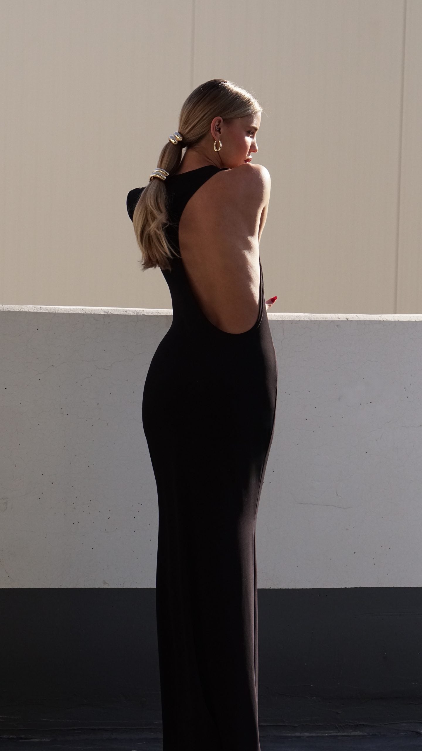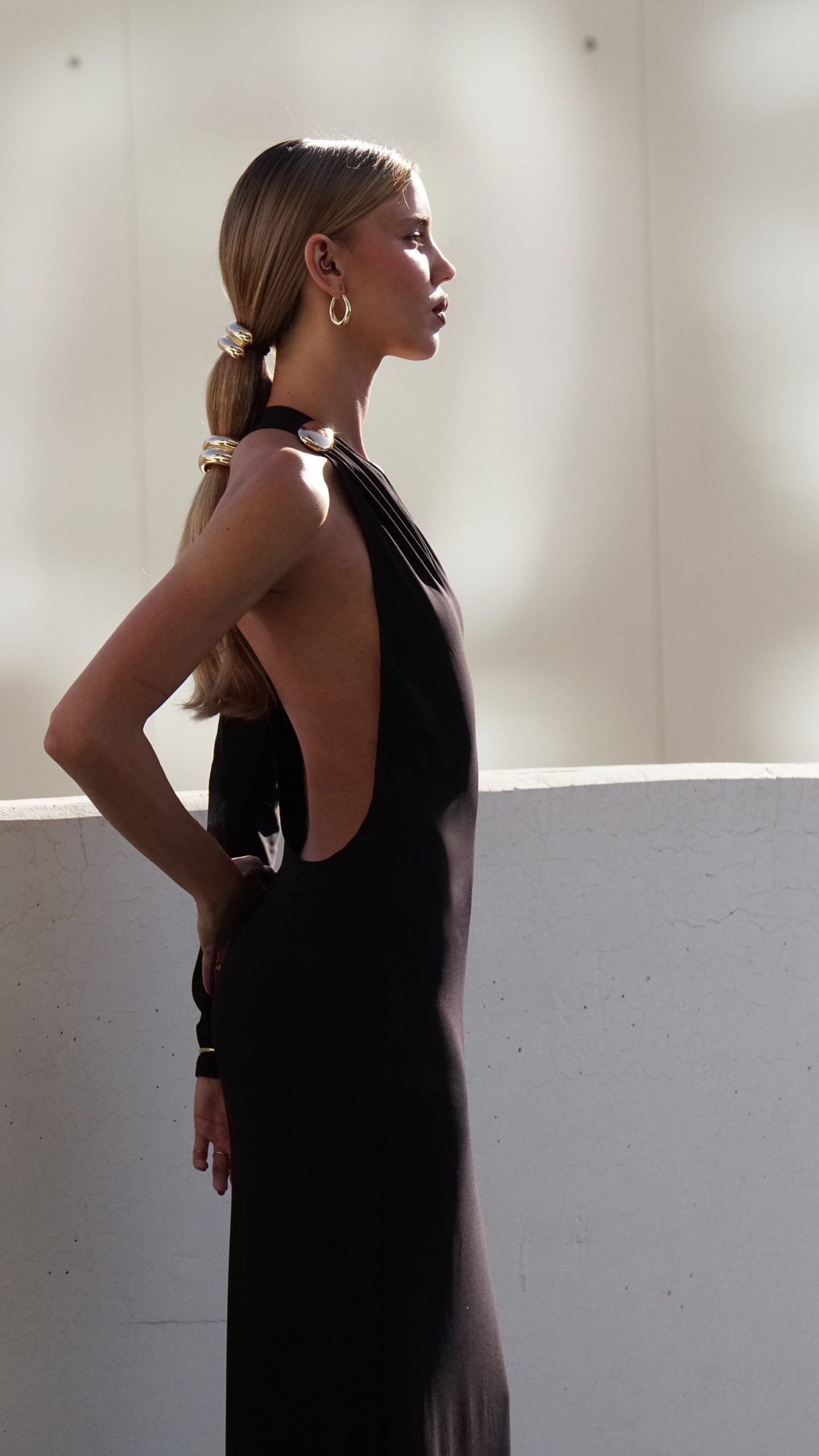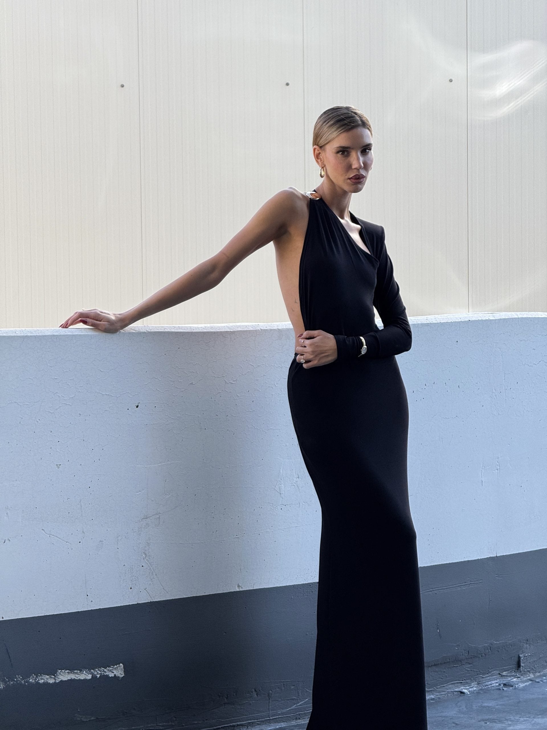 שרוול אחד בשילוב אבזם זהב גב חשוף בחיתוך מיוחד