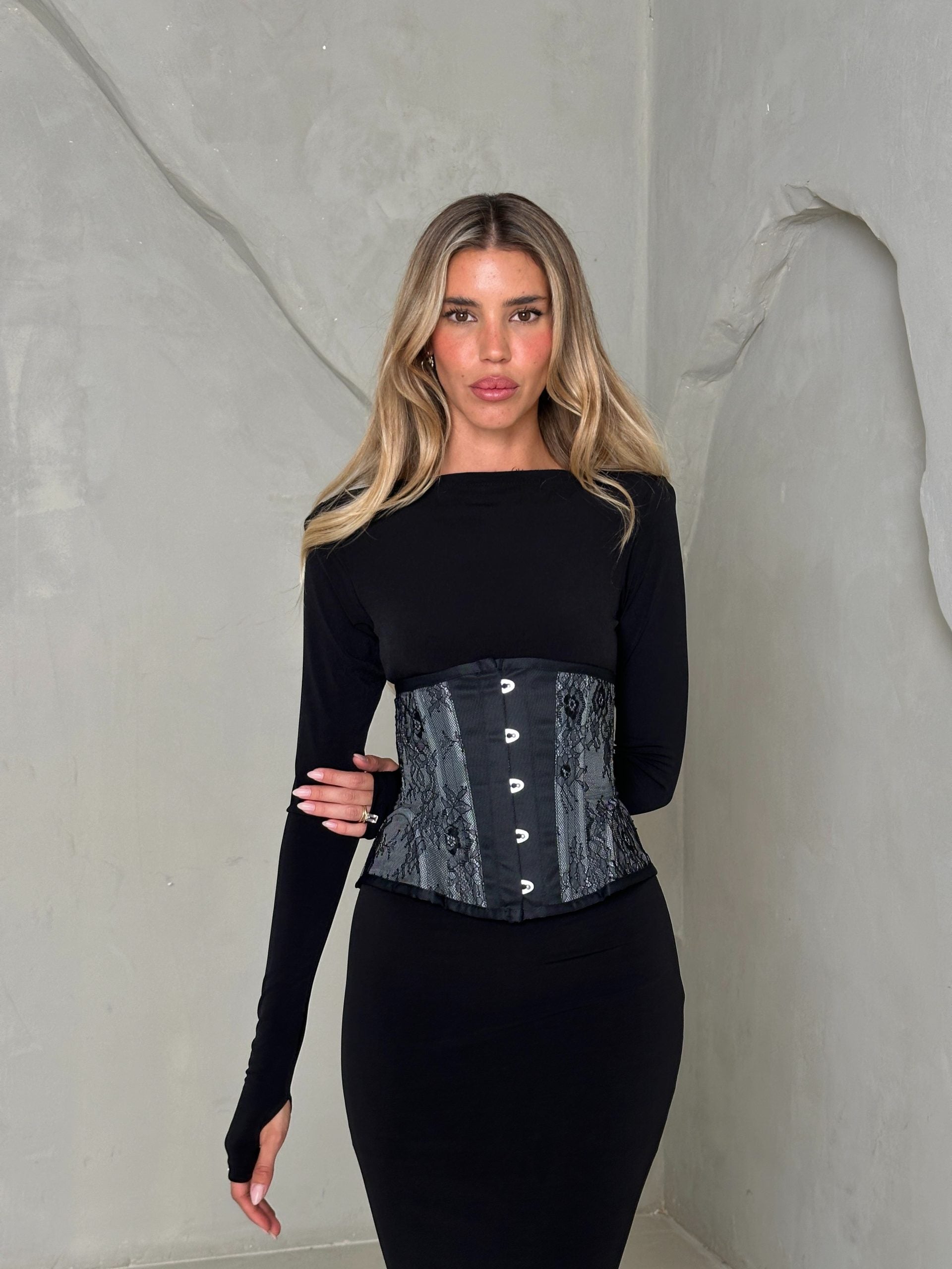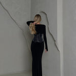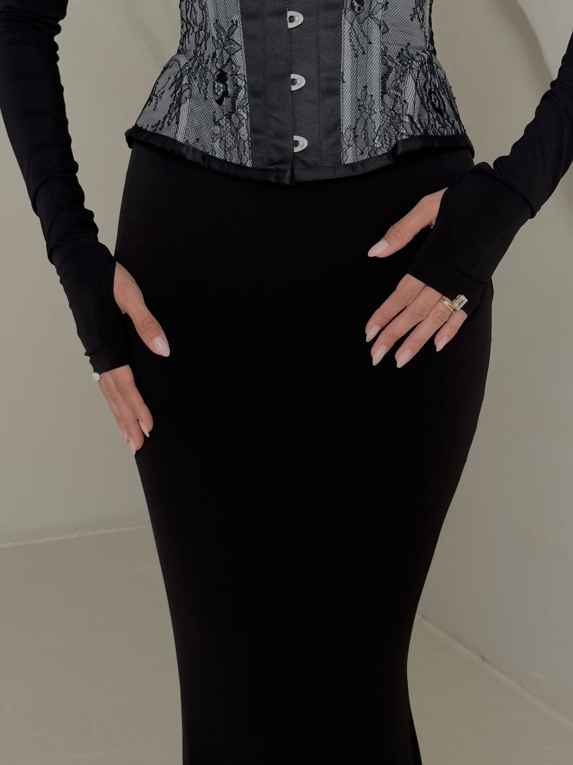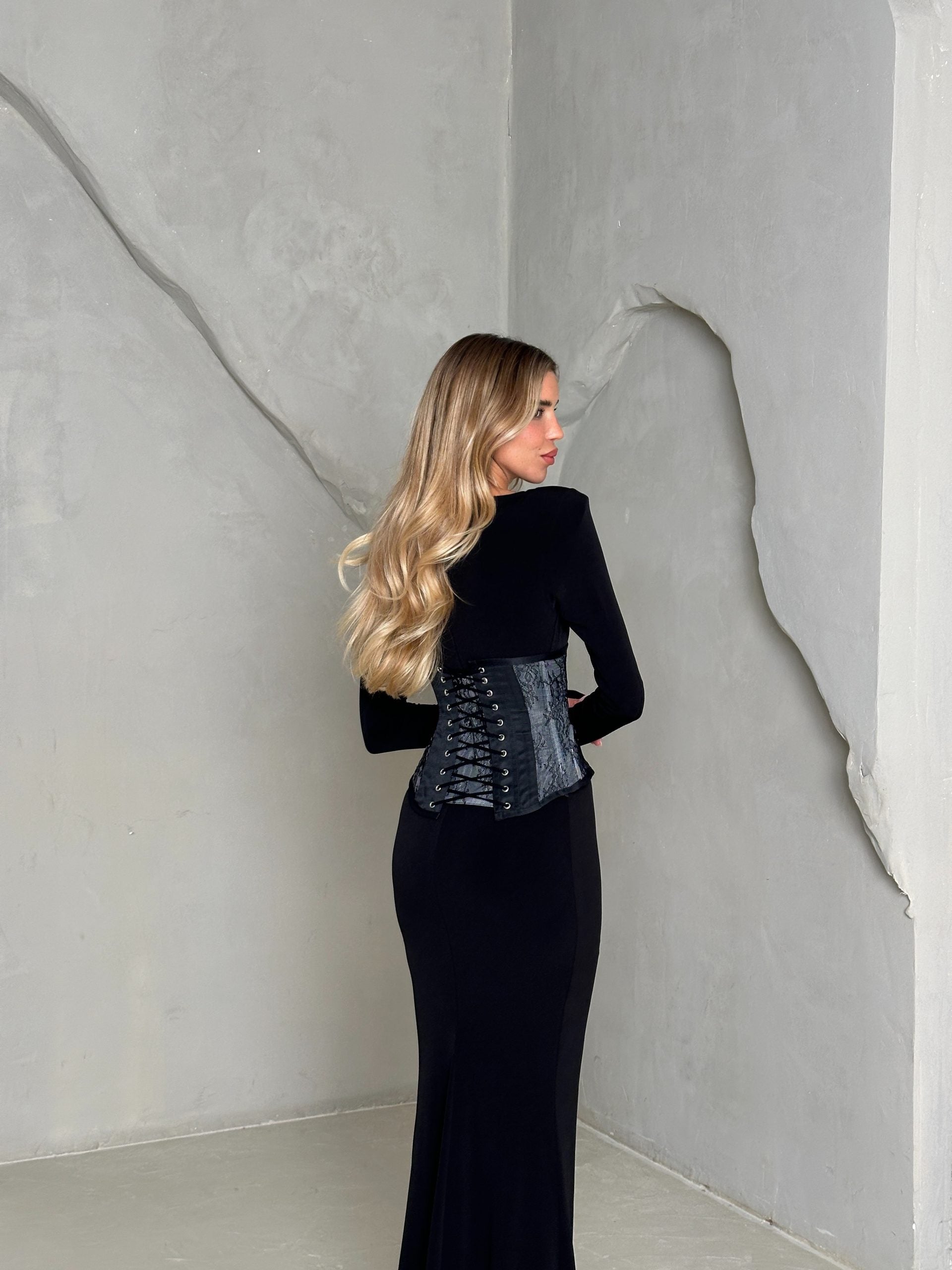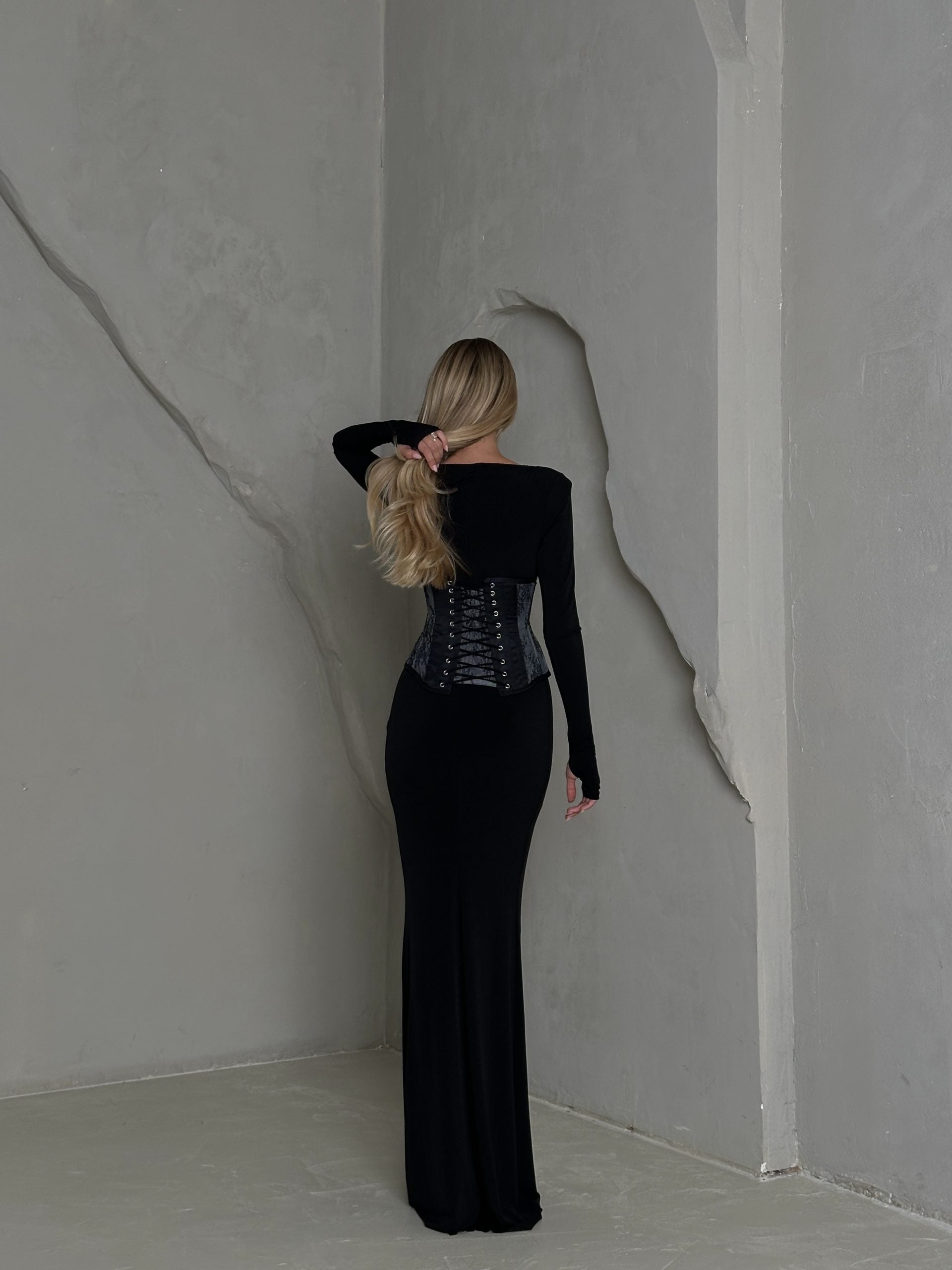 שמלת מקסי שחורה צנועה מגיעה ב2 חלקים נפרדים