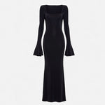 שמלת מקסי צנועה מבד יהלומים שחורים
