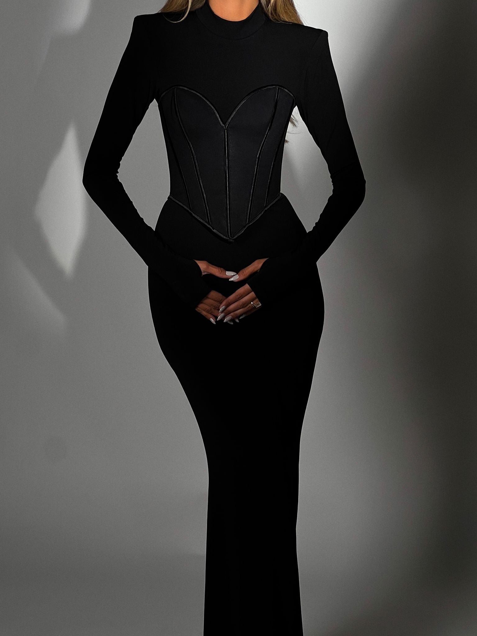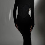 שמלה צנועה שחורה עם מחוך מתלבש מעל