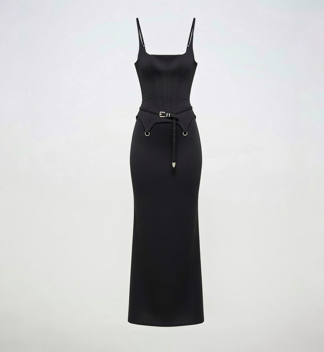 דמוי מחוך וחצאית מקסי בשילוב חגורה