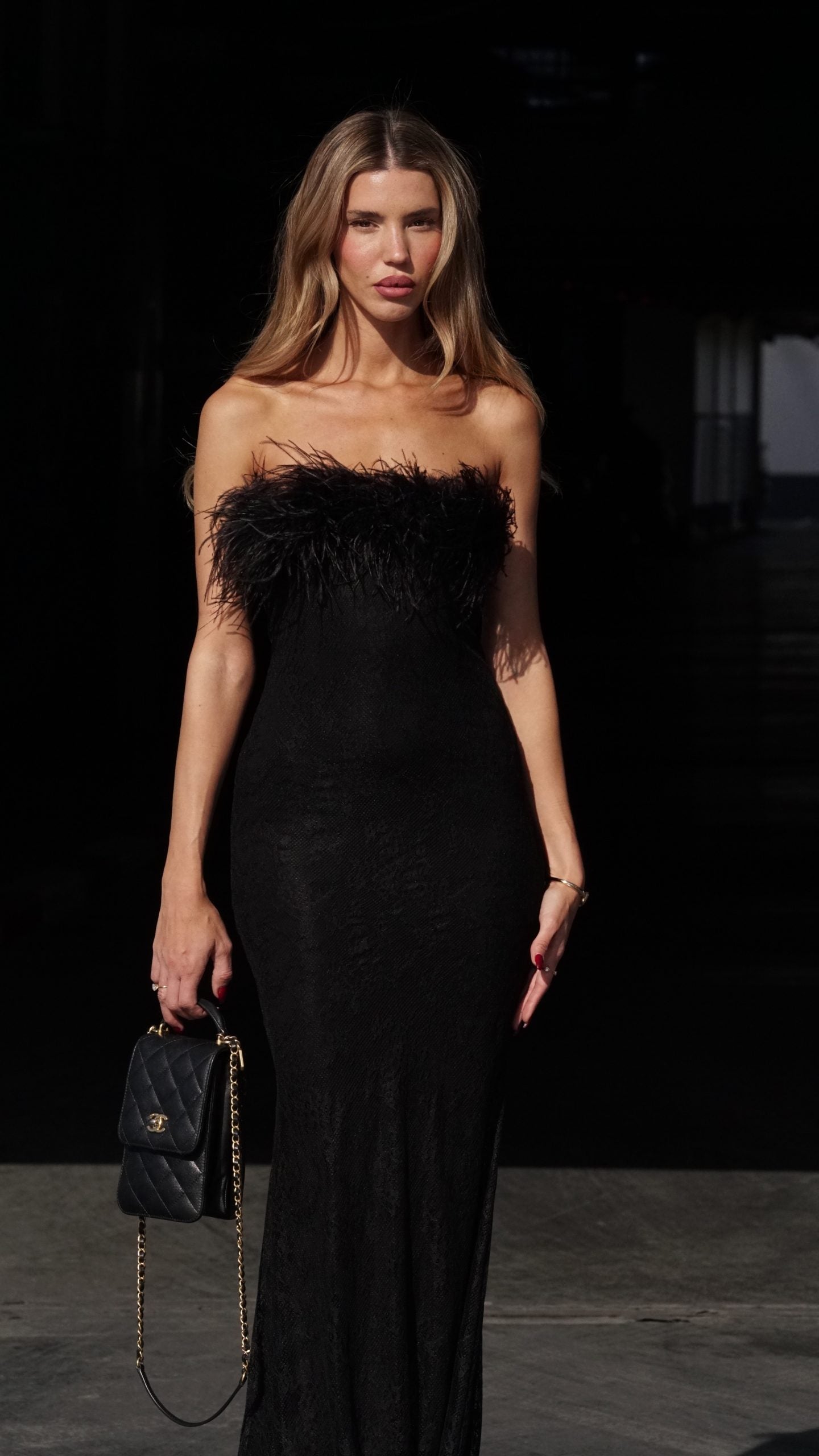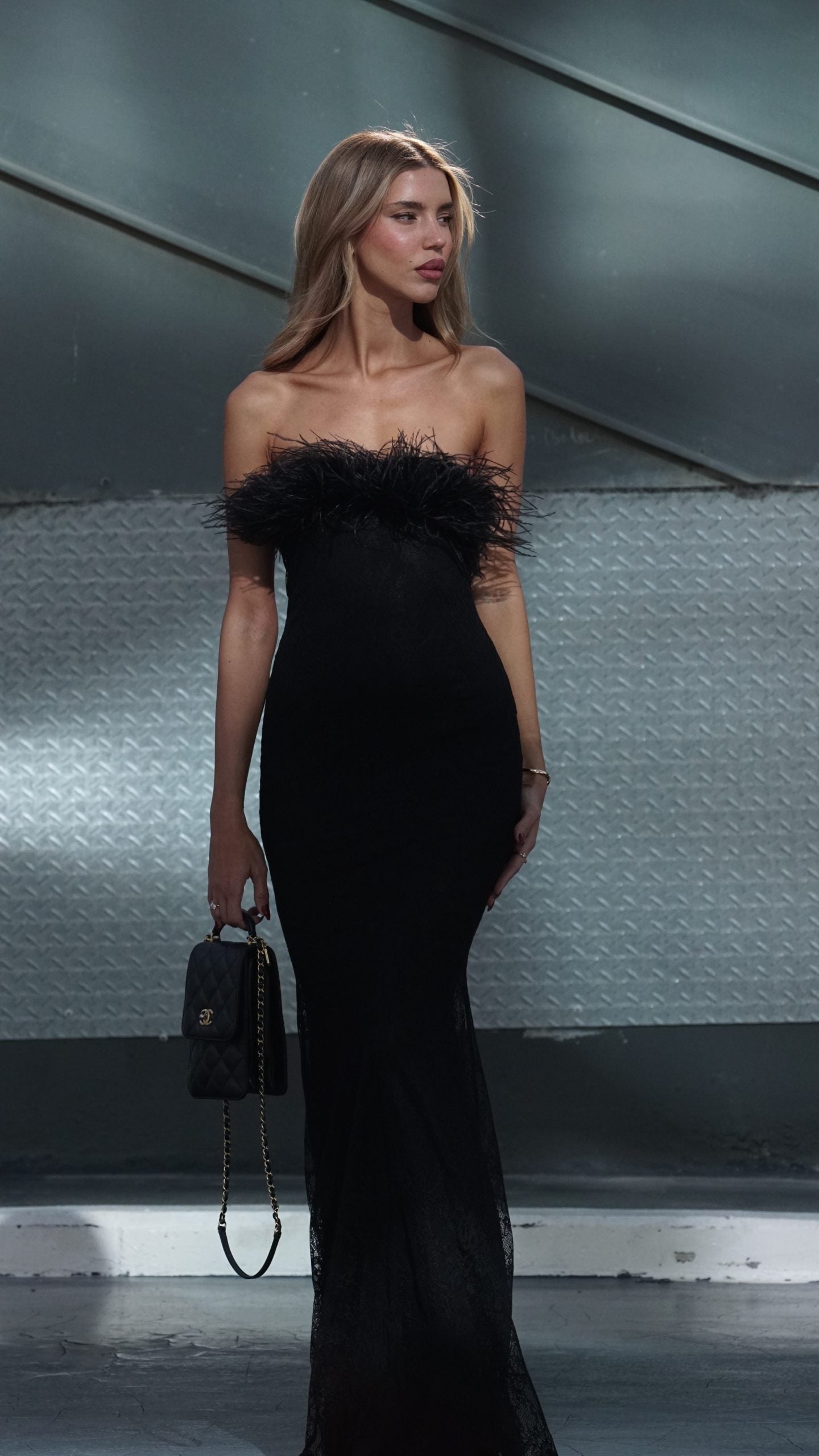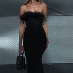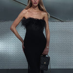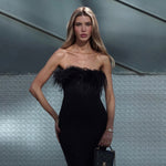 מחשוף בגימור נוצות יען שחורות יוקרתיות
