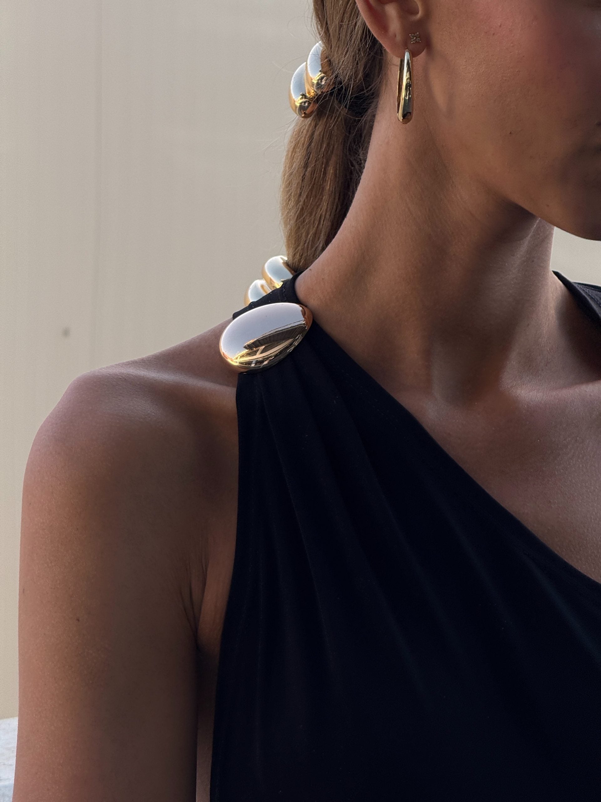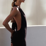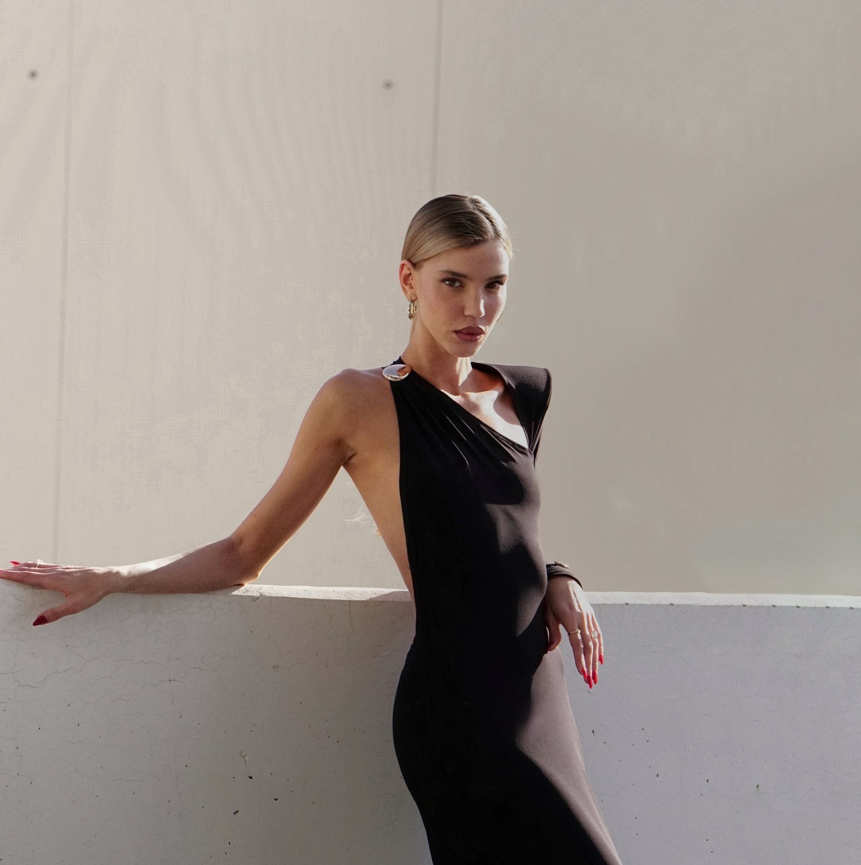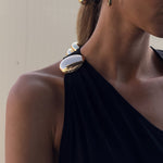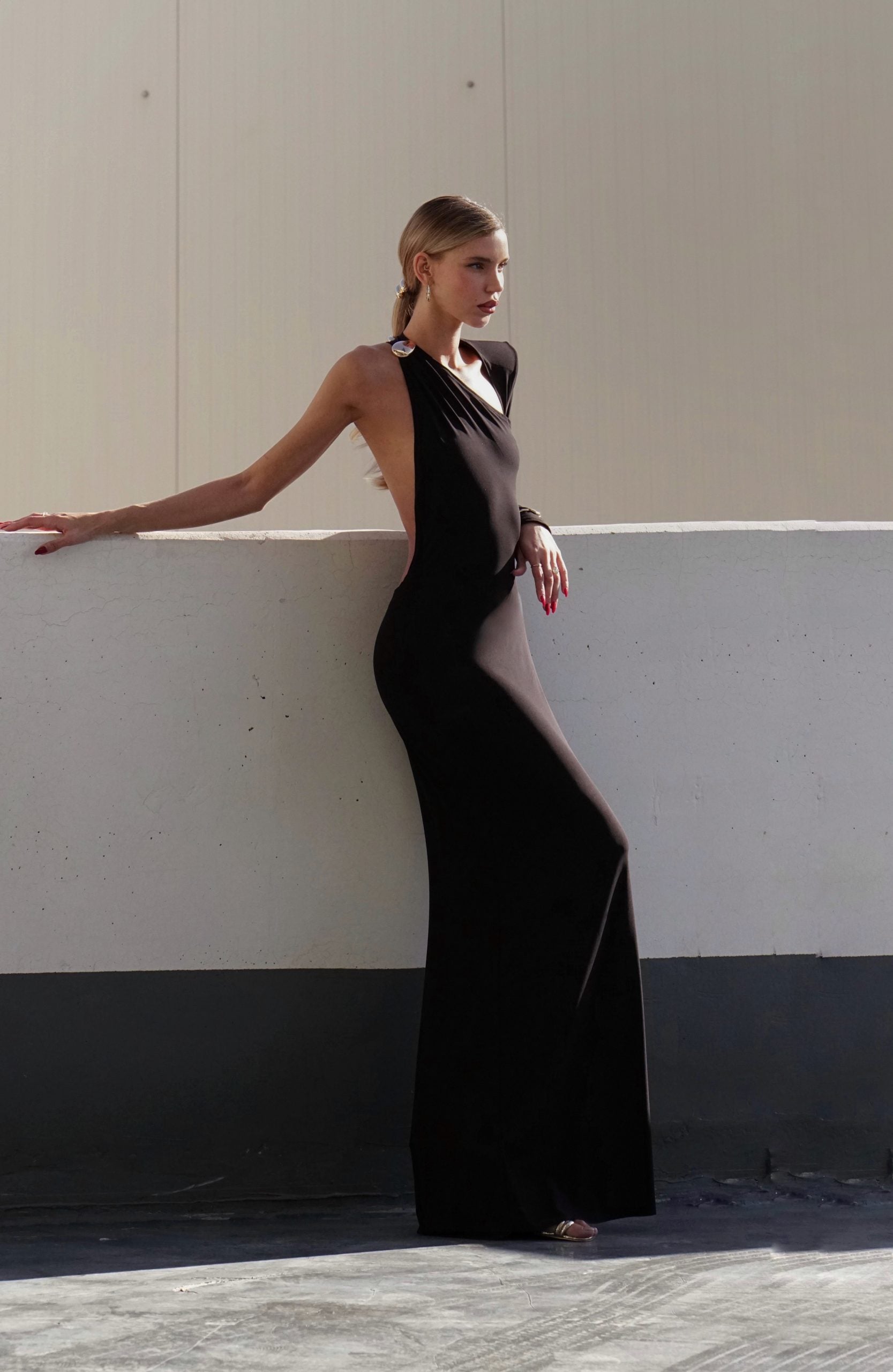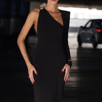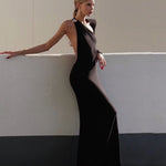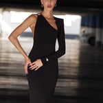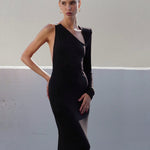 שרוול אחד בשילוב אבזם זהב גב חשוף בחיתוך מיוחד